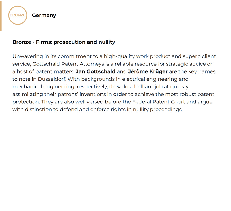 Die Patentanwälte der GOTTSCHALD Patentanwälte gehören der deutschen Patentanwaltskammer an.
